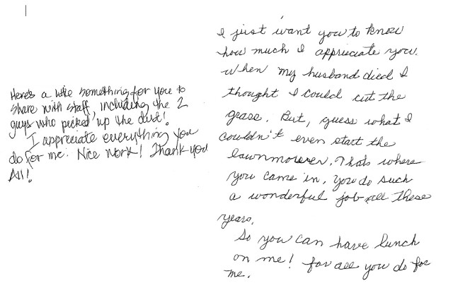 Our customers matter to us as more than just a grass, concrete, cleanup, or snow plow service; they count as friends and people.